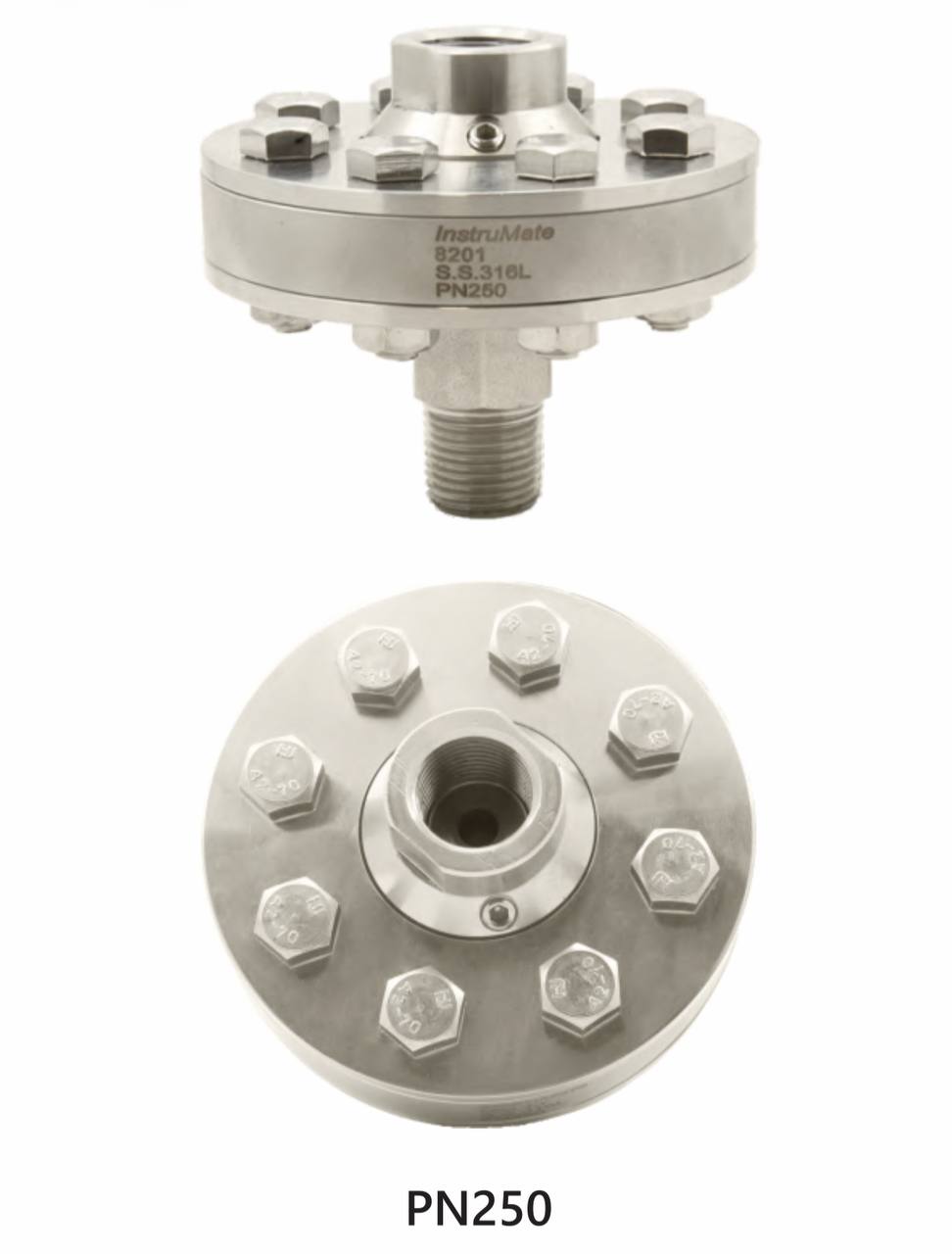 دیافراگم دنده ای مدل 8201 InstruMate با جنس تمام استیل از نوع 316L در دو نوع چهار پیچ برای فشار تا حداکثر 100 بار و هشت پیچ برای فشار تا حداکثر 250 بار میباشد.