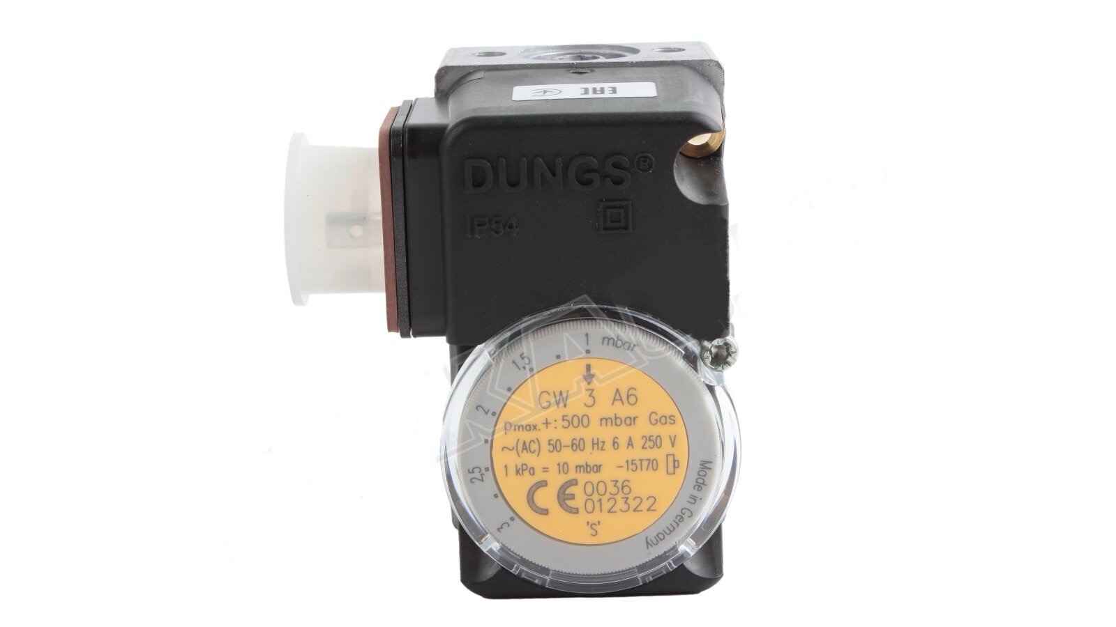 پرشر سوئیچ گاز دانگز DUNGS مدل GW50A6 یا کنترلر فشار گاز جهت تنظیم فشار گاز در مخازن یا جلوگیری از افزایش فشار در محیط های تحت فشار در صنعت کاربرد فراوانی دارد. پرشر سوئیچ گاز دانگز DUNGS مدل GW50A6 این وظیفه را دارد که در صورت رسیدن فشار به یک میزان مشخص سیستم را قطع و وصل کند. تا از آسیب رسیدن به تجهیزات جلوگیری شود برای دسته بندی انواع پرشر سوئیچ گاز معیارهای مختلفی وجود دارد. به همین دلیل شاهد تنوع بالای این محصول در بازار می باشیم. یکی از روش های دسته بندی این دستگاه بر اساس نحوه تشخیص فشار وتبدیل آن است. که بر این اساس 5 مدل پرشر سوئیچ وجود دارد: کپسولی, دیافراگمی, بیلوزدار, بوردونی و پیستونی