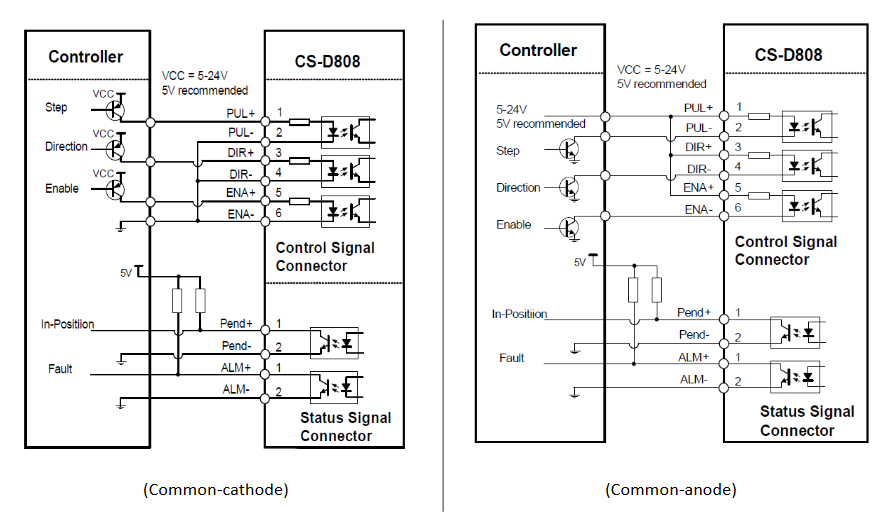 - انکودر 1000 پالس بر دور. در مدل های به روز تر استپ موتورهای دو فاز از گشتاور 1.8 تا 8.8 تیوتن/ متر در اندازه فلنج 56 و 86