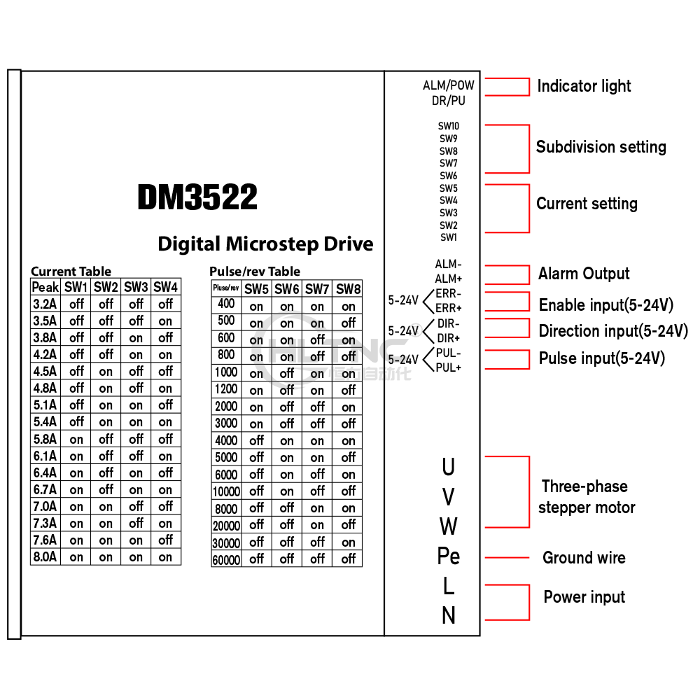 - انکودر 1000 پالس بر دور. در مدل های به روز تر استپ موتورهای دو فاز از گشتاور 1.8 تا 8.8 تیوتن/ متر در اندازه فلنج 56 و 86