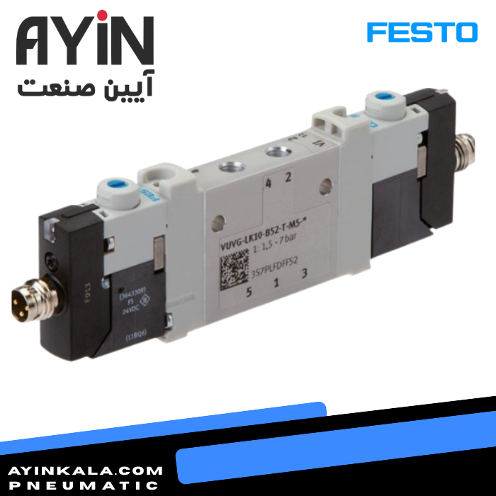 🔹 معرفی شیر برقی پنوماتیک فستو مدل Festo VUVG-LK10-B52-T-M5-1R8L-S